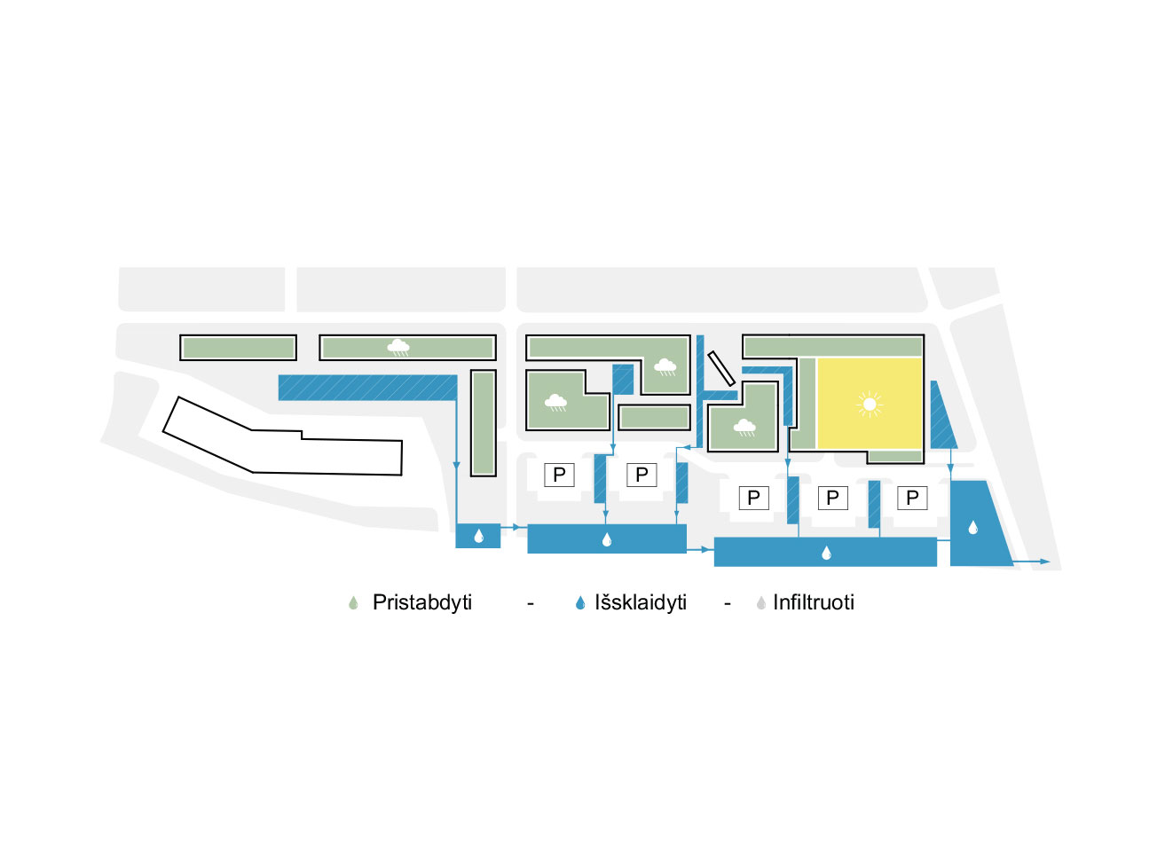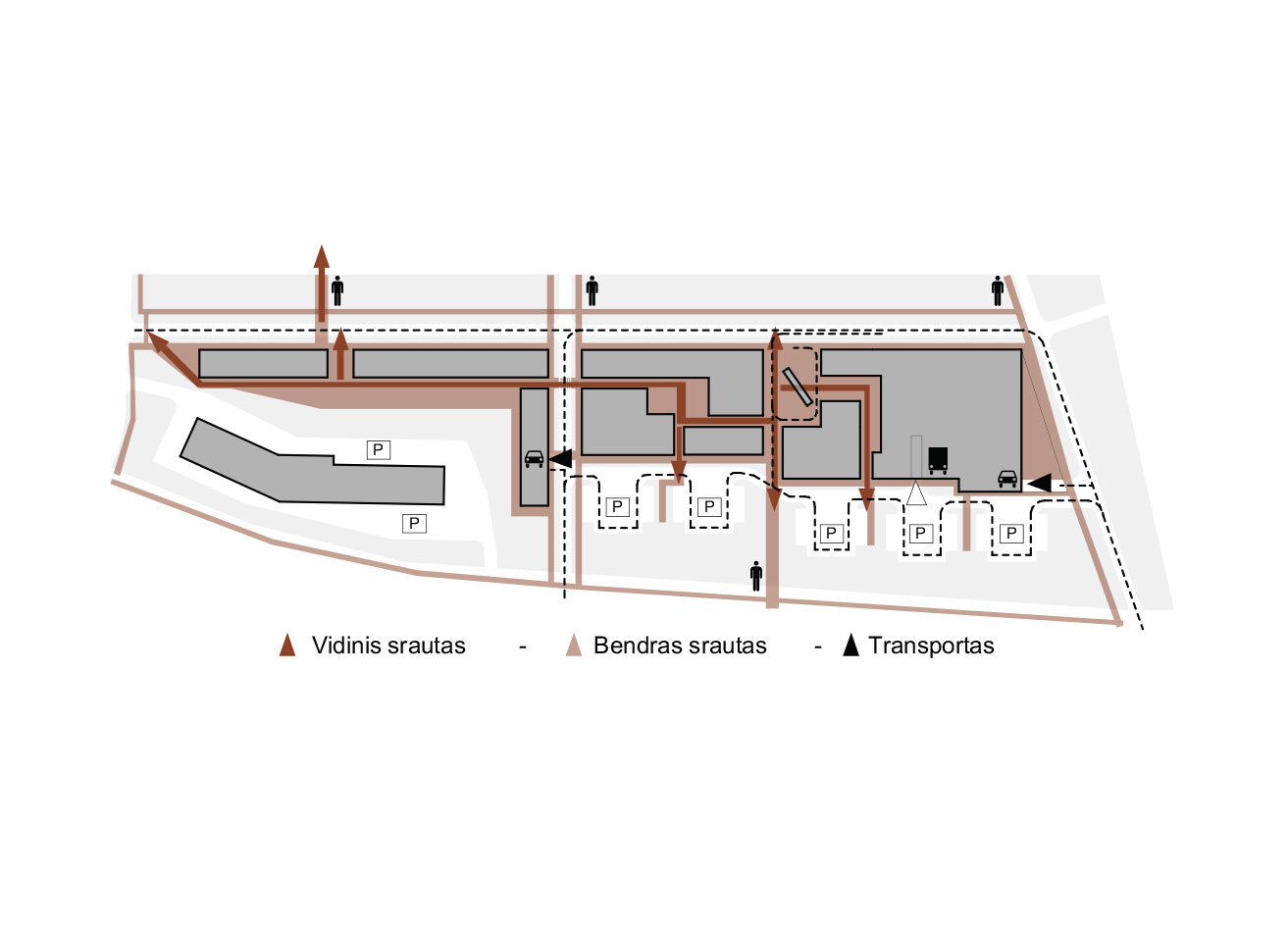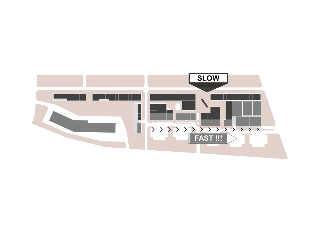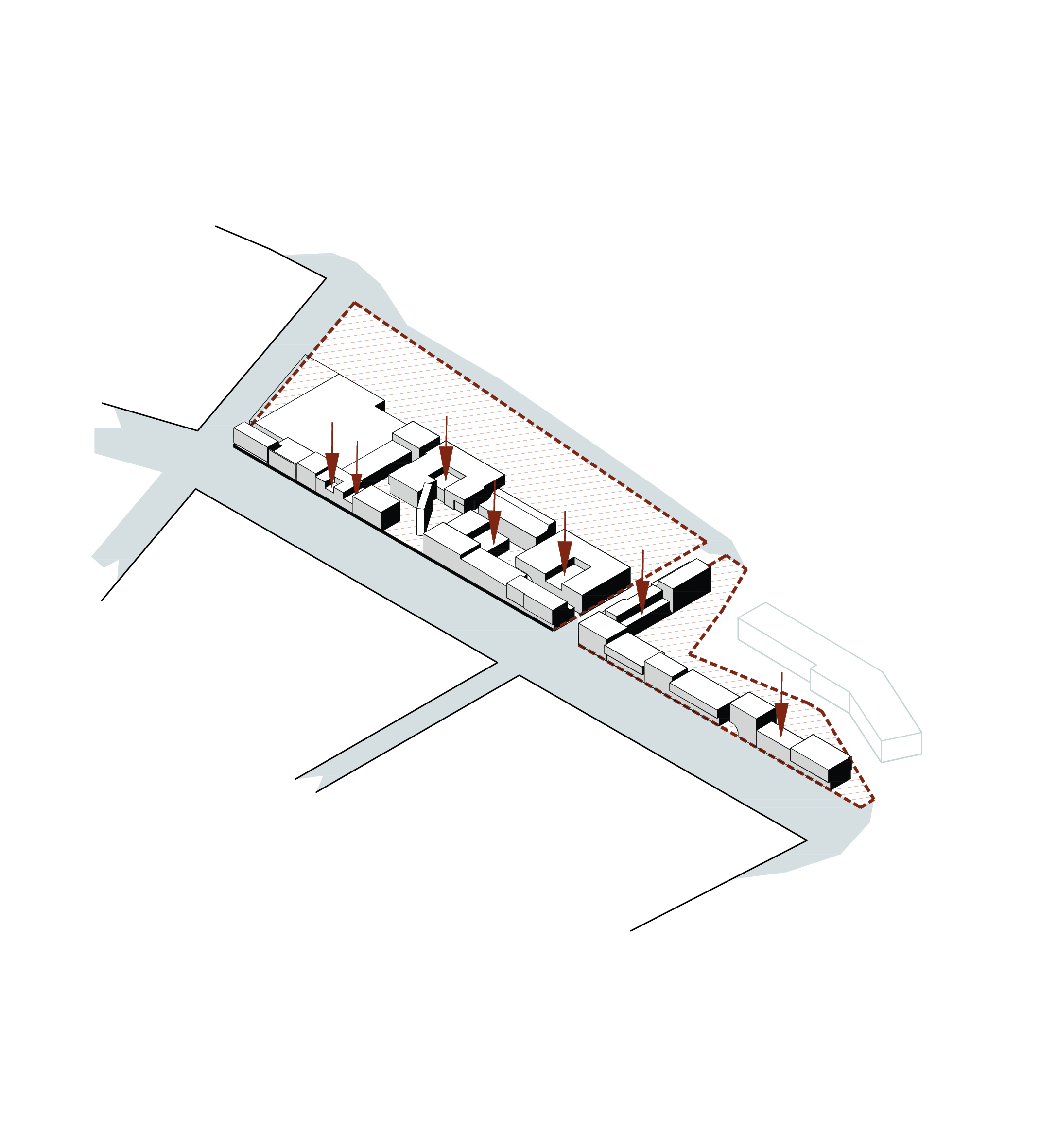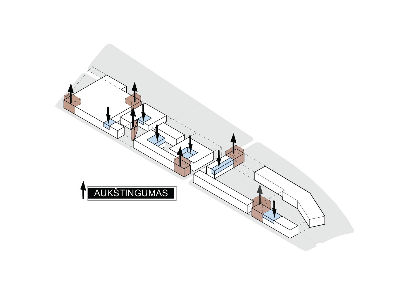 The functions of the internal and public spaces form the concept of a 24/7 vibrant district