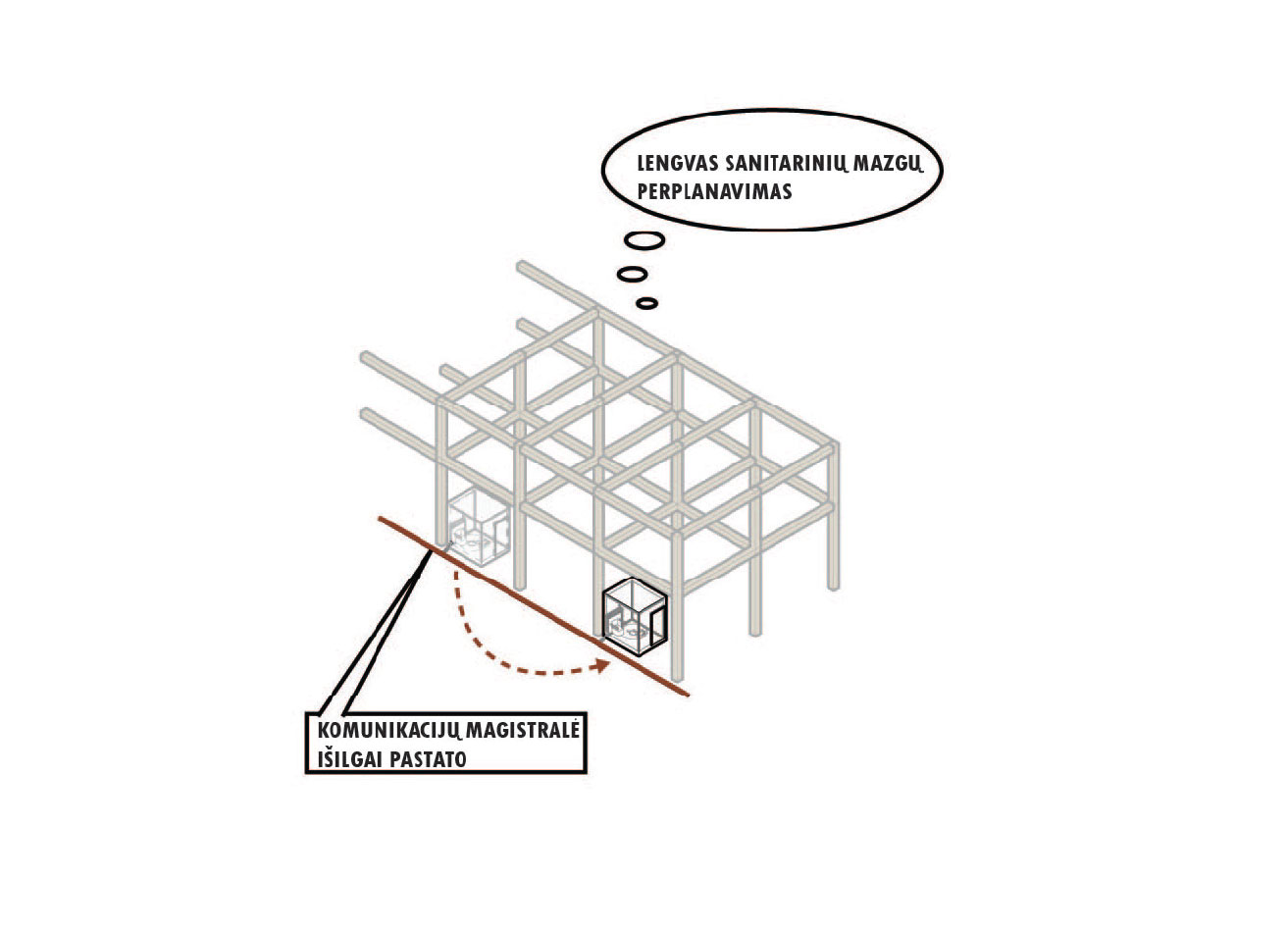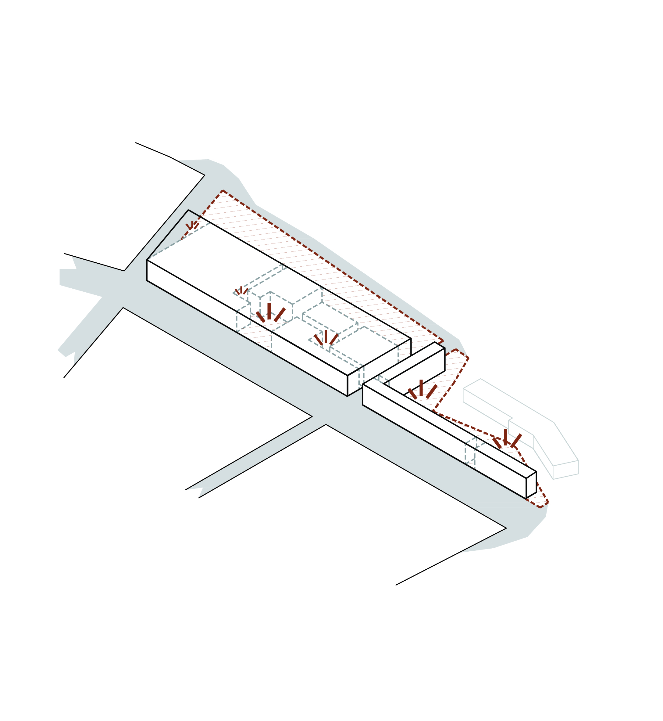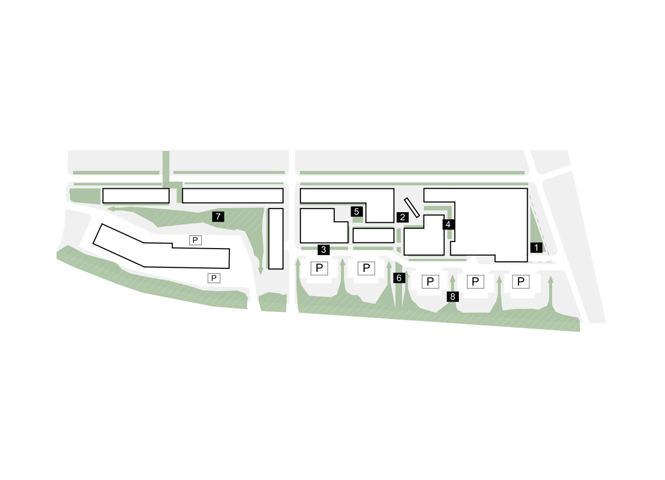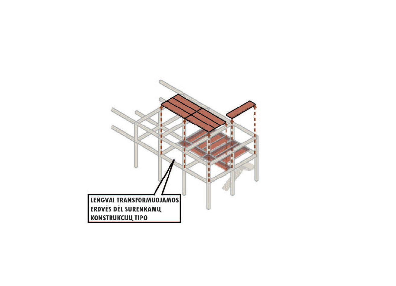 The functions of the internal and public spaces form the concept of a 24/7 vibrant district