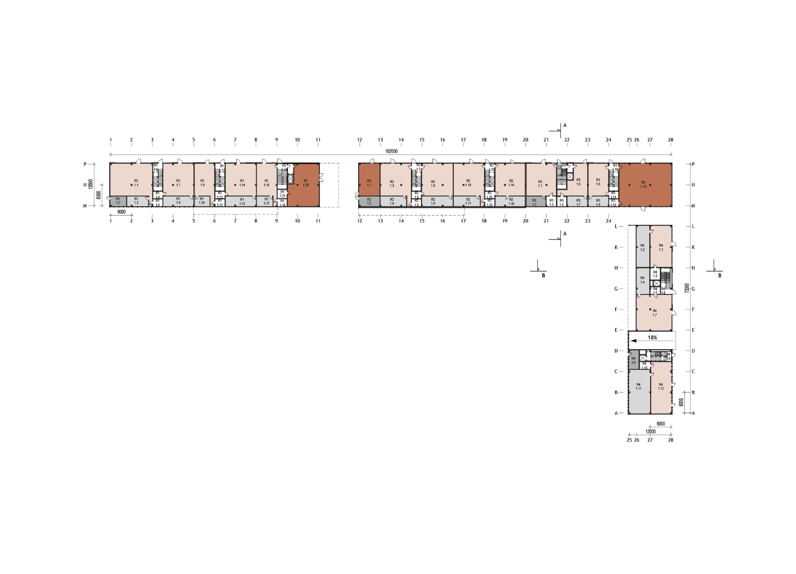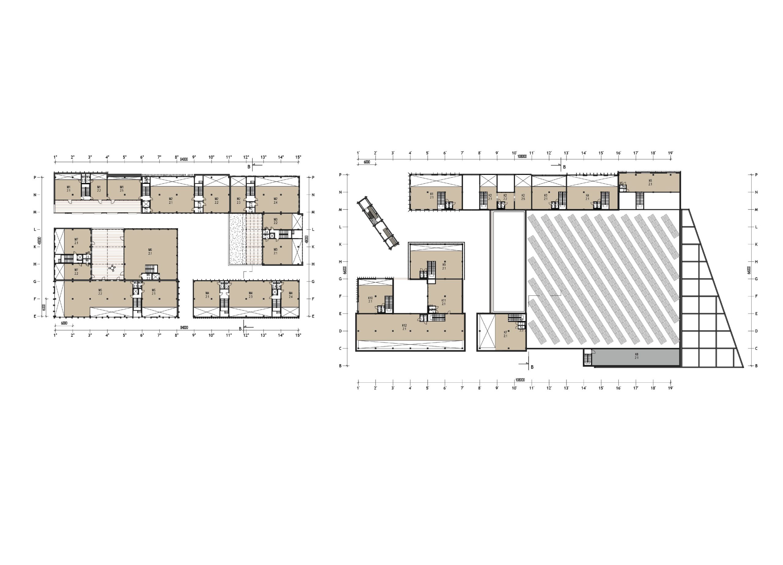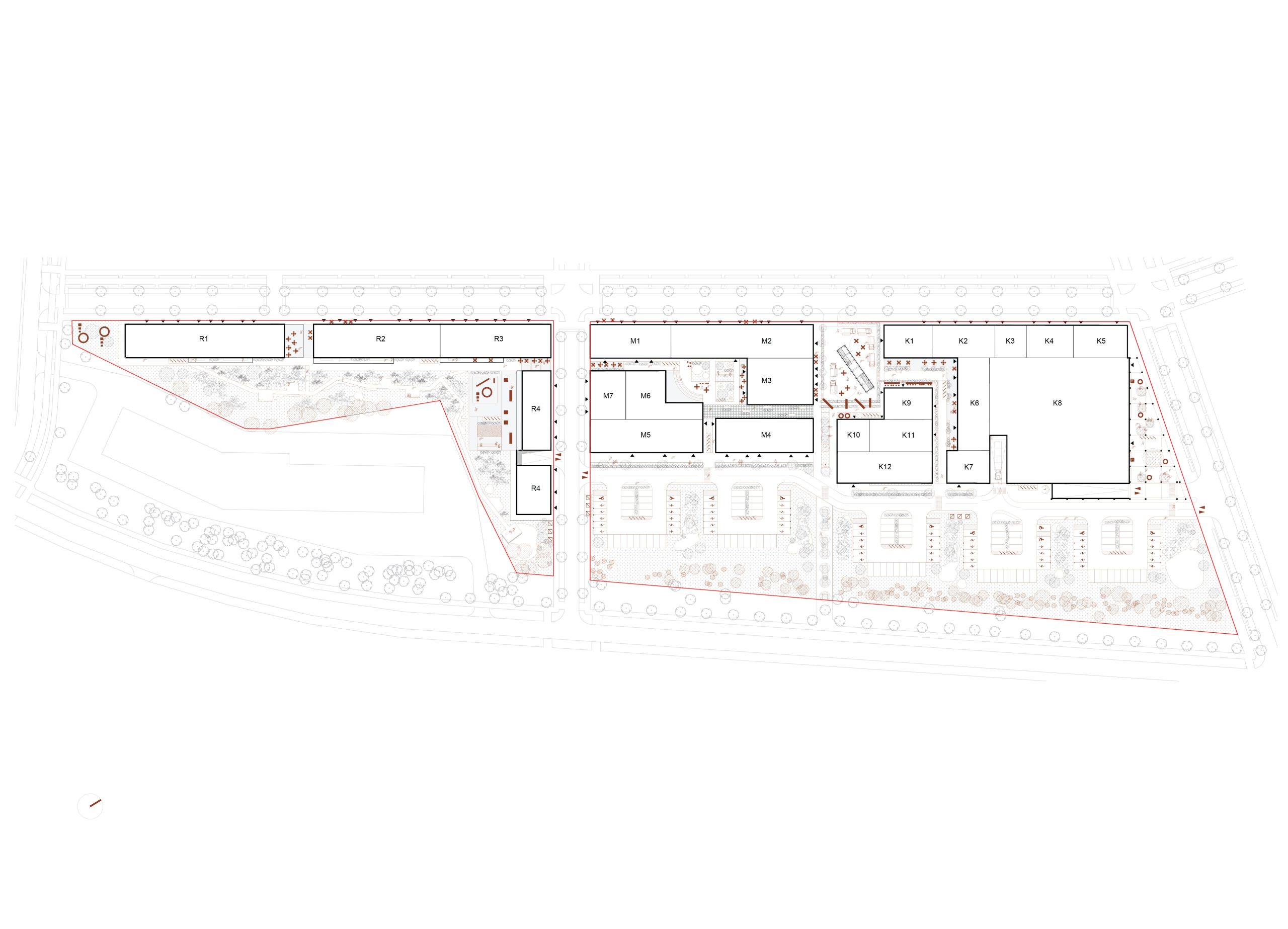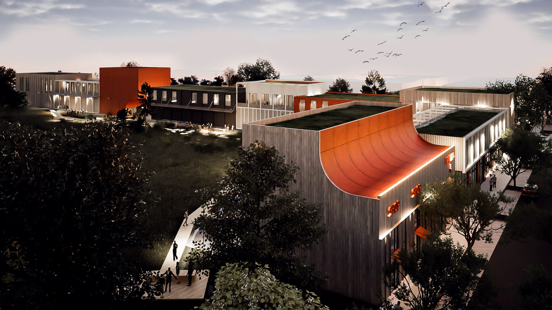 The functions of the internal and public spaces form the concept of a 24/7 vibrant district