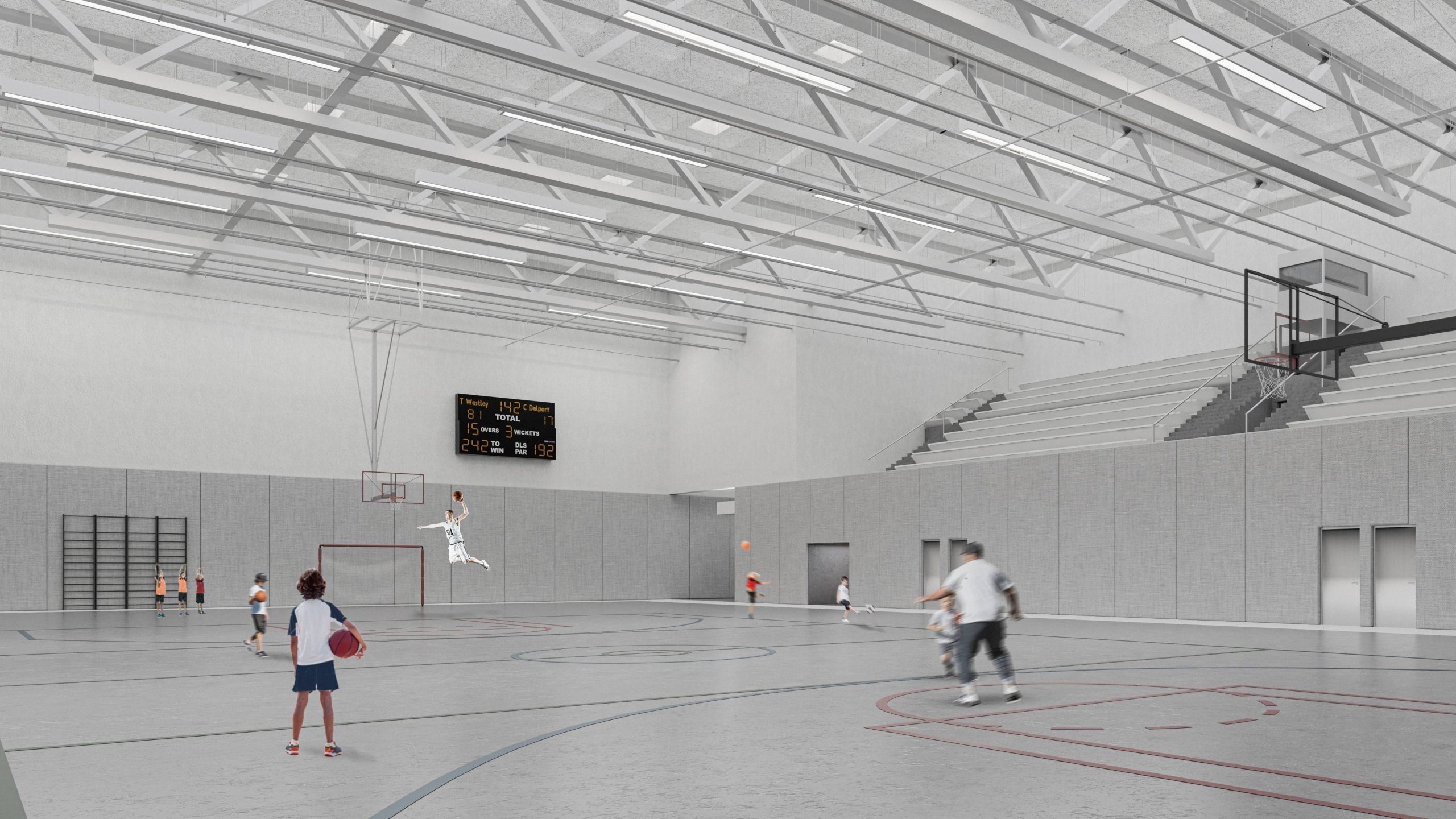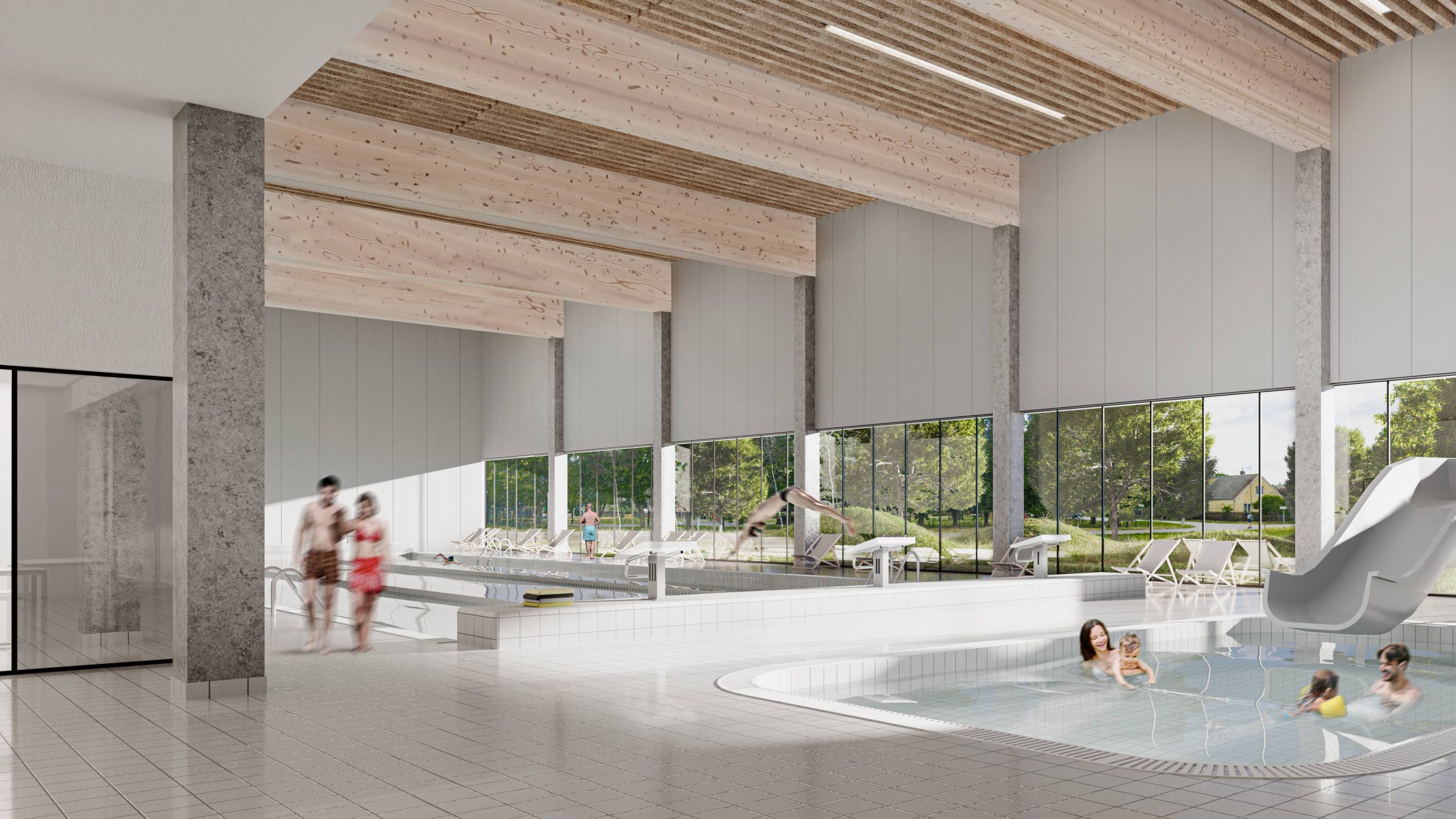 The design proposes a Universal Sports and Swimming Complex in Joniškis, aimed at increasing access to leisure, wellness, and non-formal education services that meet the modern needs of the Joniškis district community. The facility will include a swimming pool with a sauna area, sports halls, and a multifunctional sports arena suitable for competitions. The entire complex can accommodate up to 700 people. The spatial concept of the building is based on the principle of contrast. A bright and minimalist structure has been created, which clearly stands out from its surroundings and expresses its distinct aesthetic character.